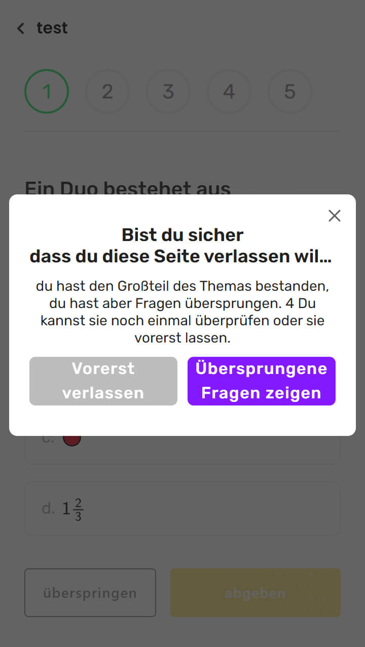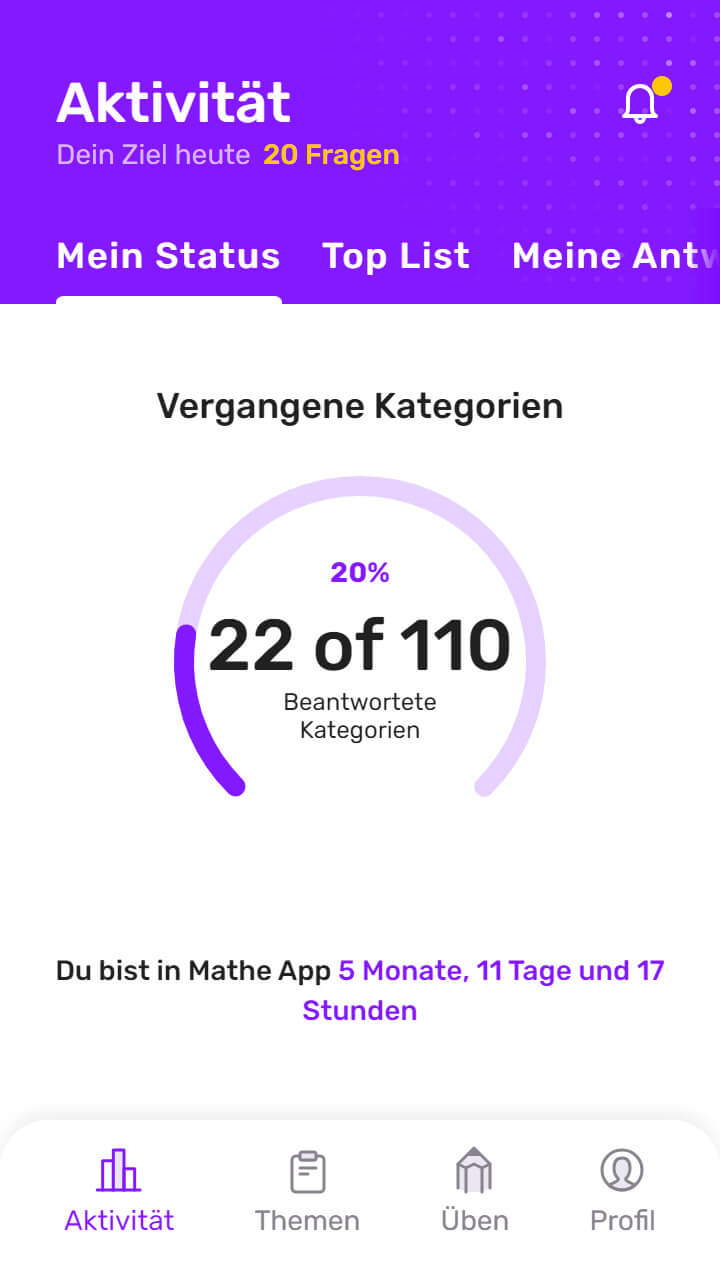 Um die Disziplin aufrechtzuerhalten und jeden Tag Fortschritte zu machen, können Sie ein Tagesziel mit einer Mindestanzahl an Fragen festlegen, die Sie jeden Tag beantworten sollten.